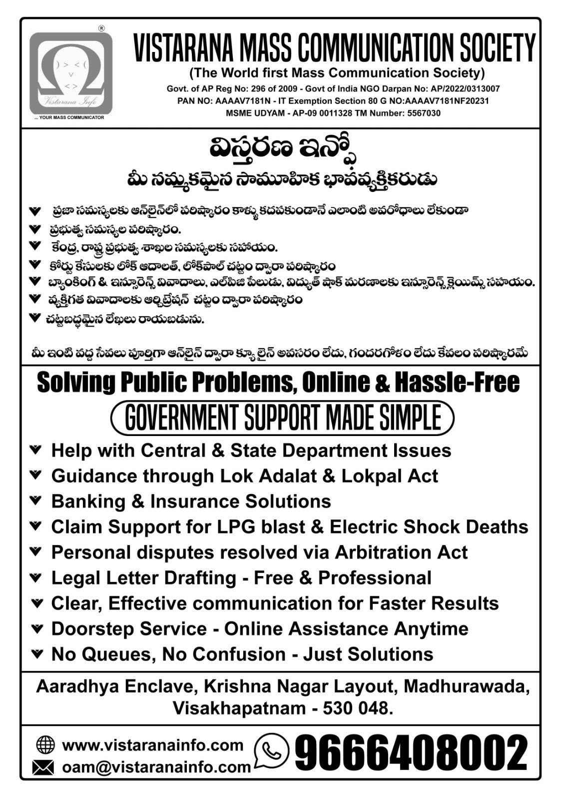 Vistarana Info, a flagship initiative of the Vistarana Mass Communication Society, carries the tagline “Your Mass Communicator”, reflecting its mission to bridge gaps between citizens and institutions through effective communication.